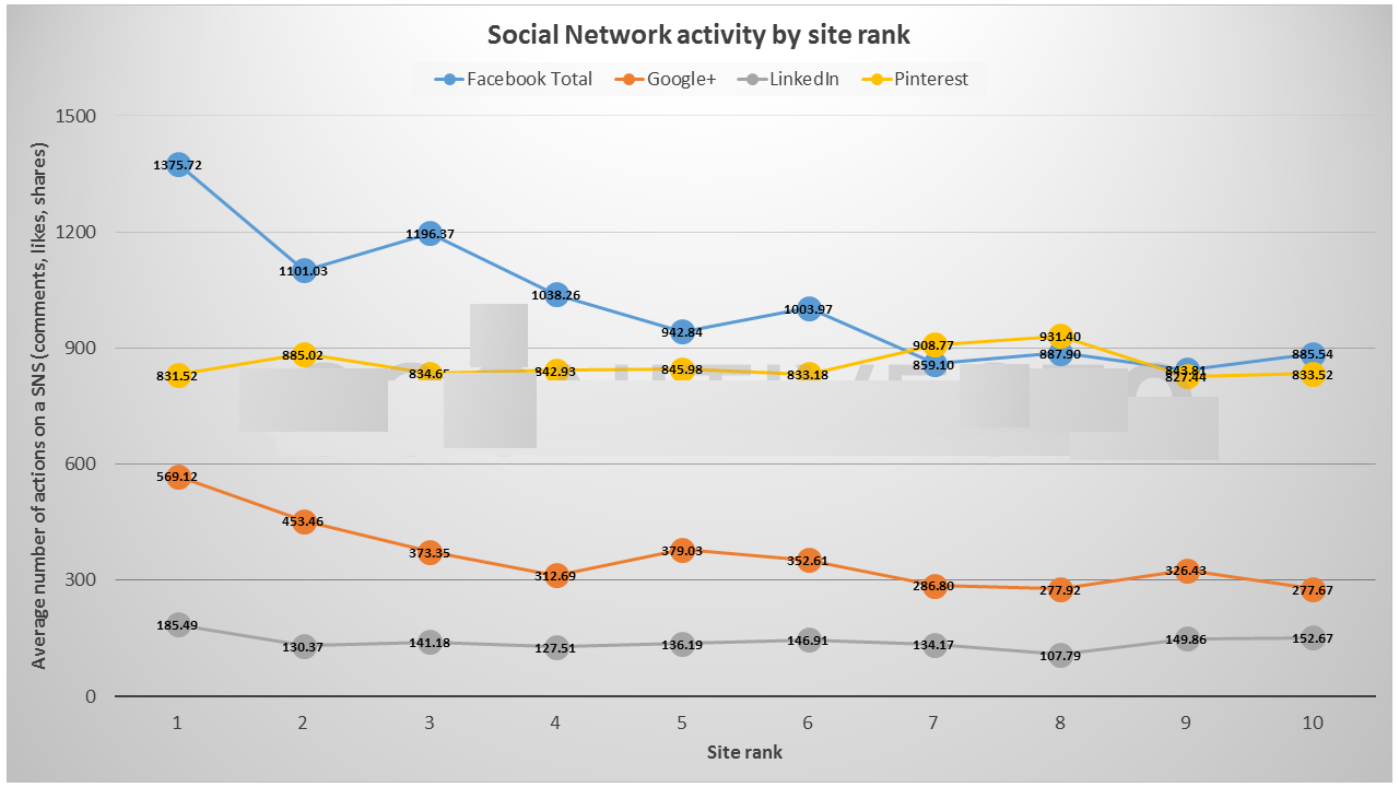 - The current study is based on social signals coming from Facebook, Google+, Pinterest and LinkedIn. We couldn’t include Twitter into this analysis due to their decision of deactivating share counts.