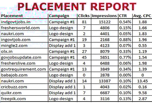 REPORTS WILL PROVIDED TO LET YOU KNOW ON WHICH WEBSITES THE ADDS WERE PLACED AND HOW MANY IMPRESSIONS OR CLICKS IT DERIVED