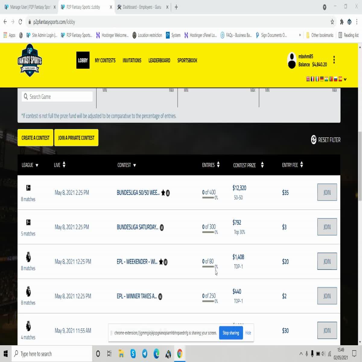 A total of 3500 entries to be added to a number of different contests we will set up on our Fantasy Sports platform using the pre-funded test accounts we will supply.