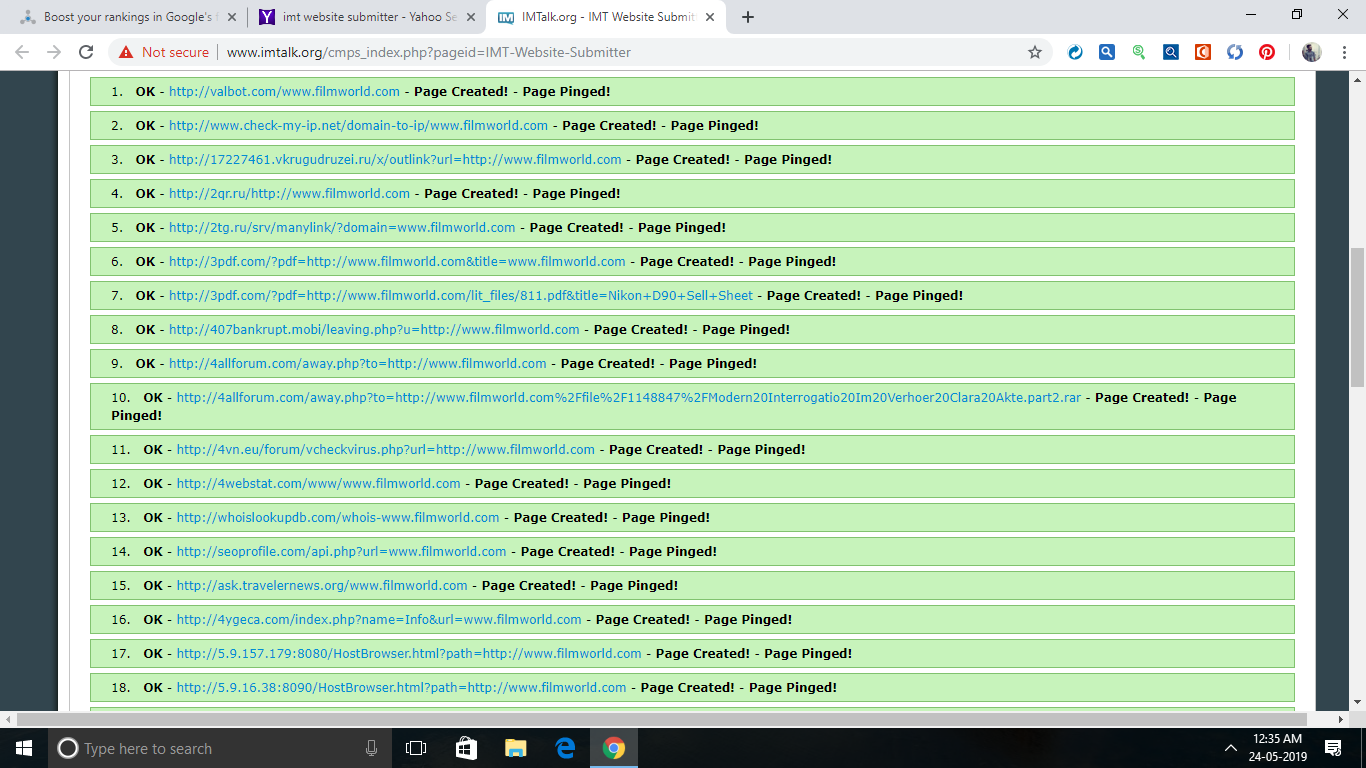 After work done I will send you complete report with screenshots and submitted link.