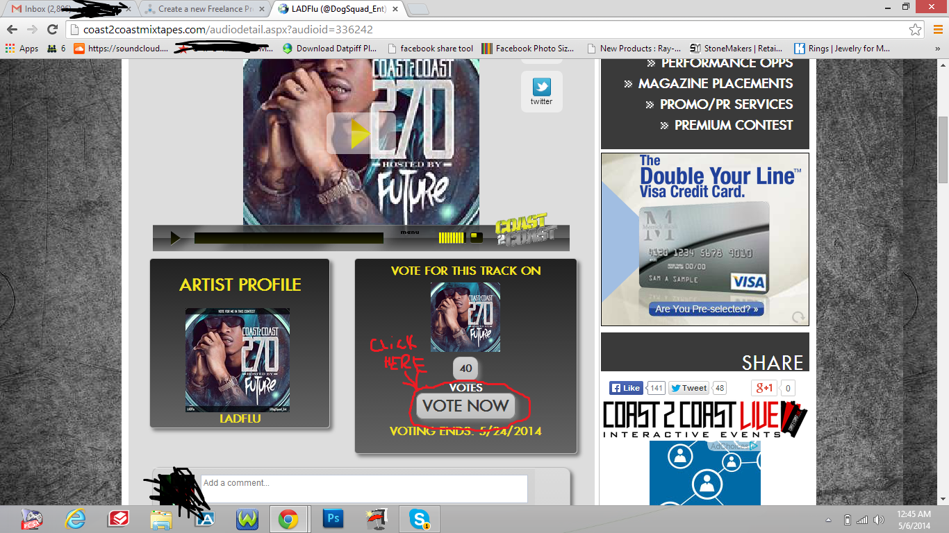 I need 150 Votes fast to http: coast2coastmixtapes.com via twitter deadline...