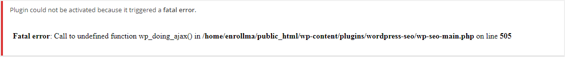 1. I can t activate any plugin because it appears this error: Fatal error: ...
