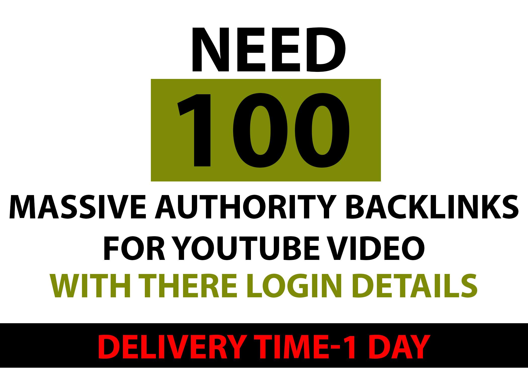 Need 100 Only AUTHORITY backlinks Need Detailed excel REPORT with login dat...
