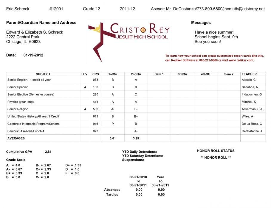 Create for me 2 college report cards in pdf file. i will provide all grades...